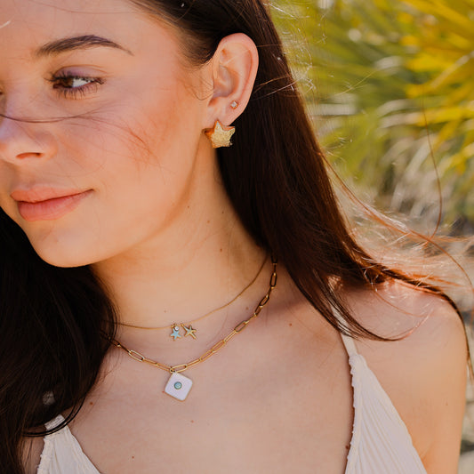 Our curated selection of waterproof, tarnish-free jewelry is perfect for the modern traveler. Crafted from durable PVD Plated Stainless Steel, each piece is built to withstand the elements – from the salty ocean waves to the chlorinated pool, and everything in between. Dive into our best sellers, knowing they'll stay as radiant and vibrant as your wanderlust spirit.