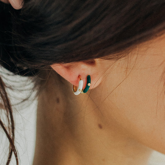 Lightweight, hypoallergenic pieces that add a touch of glamour to your travel ensemble – dive into our waterproof, sweat-proof, life-proof earrings that won't tarnish on you!
