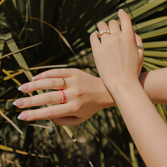 Stackable and statement rings that capture the essence of your journey – dive into our waterproof, sweat-proof, life-proof rings that won't tarnish on you!
