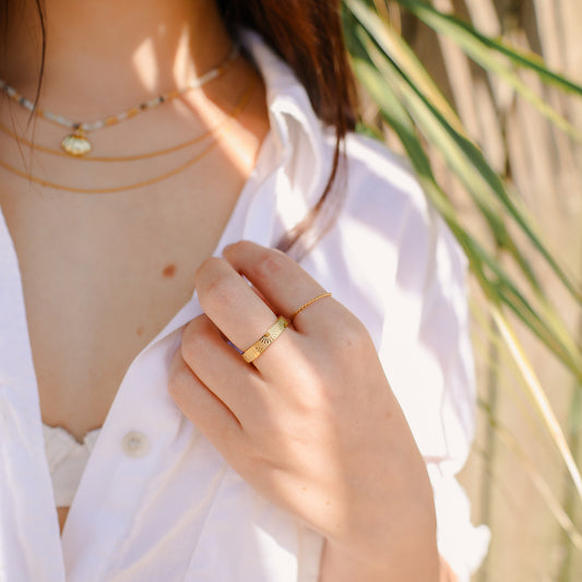 Stackable and statement rings that capture the essence of your journey – dive into our waterproof, sweat-proof, life-proof rings that won't tarnish on you!